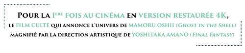 Notre avis : De superbes dessins, une animation astucieuse et judicieuse, peu courante. Un symbolisme complexe, pour un film spectaculaire, prenant, envoûtant, qui se dote de très peu de dialogues : ce qui accentue notre regard sur cet univers fantastique. Le style graphique, lié à une très belle musique, nous plonge dans une atmosphère irréelle et désespérée, mais que c'est beau : même si l'on ne comprend pas tout. Un film splendide, unique en son genre par rapport à tout ce que j'ai pu voir avant. C'est sombre, mais tellement fascinant. Une élégance visuelle, qui nous transporte dans un autre univers onirique à souhait. Que l'on y voit le symbolisme de la création de l'univers ou pas, artistiquement c'est du pur art, rare. Un film à la fois plus profond et plus subtil que ce à quoi on peut s'attendre. A découvrir absolument, sur grand écran lors de cette première sortie au cinéma dans les salles françaises, 40 ans après sa réalisation. Gérard Chargé - 3 Zooms -